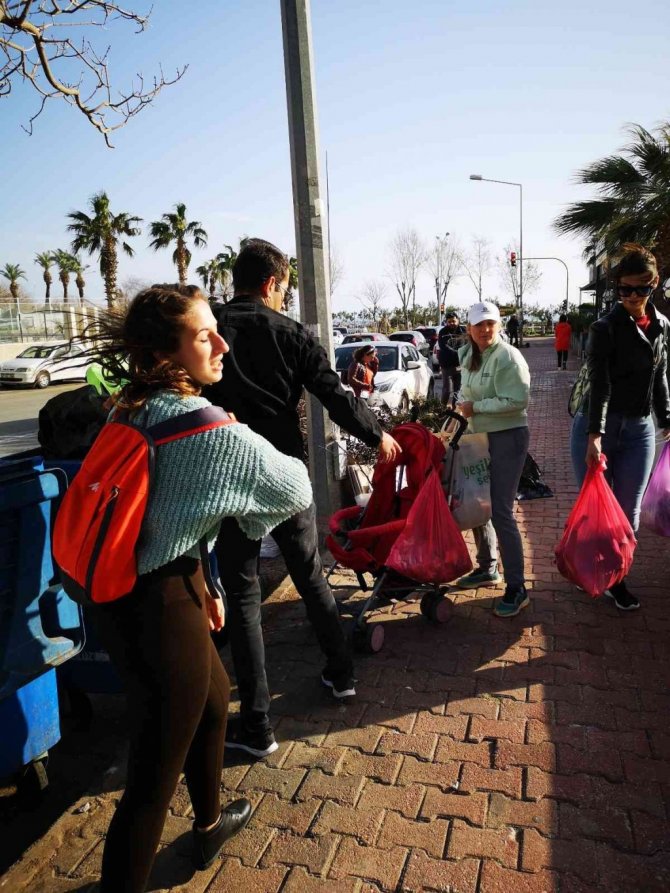 Antalya'da Ukraynalı bir kadının çevre sevgisi karşılık buldu. Sosyal medyadan yaptığı çağrı ile bir araya gelen onlarca kişi, dünyaca ünlü falezlerde poşet poşet çöp topladı. Bazı katılımcıların topladıkları çöpleri bebek arabası ile taşıdı.