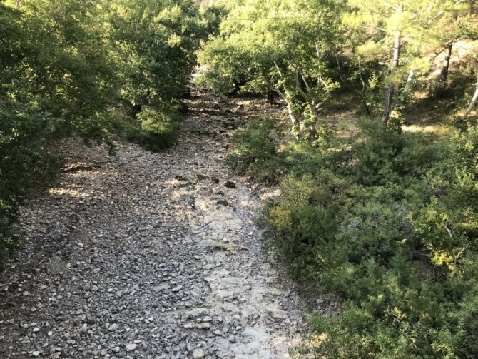 Yurdun bazı bölgelerinde şiddetli yağmur ve sel felaketleri yaşanırken, Antalya'nın Oymapınar ve Manavgat barajlarını besleyen en önemli kaynaklardan Üzümdere ırmağında, birkaç küçük gölet dışında su kalmadı.