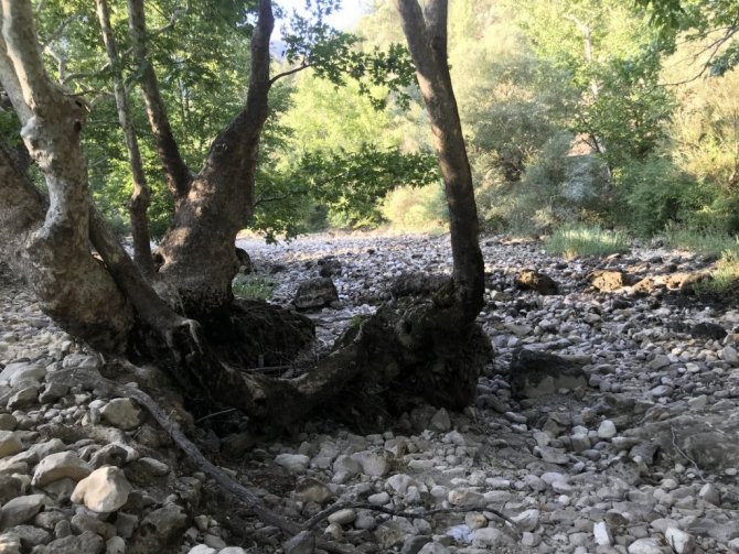 Irmağı kuru şekilde görünce çok üzüldüğünü ifade eden Çelik, "Bu yıl ırmağın çok erken kuruduğunu gördüm. Biz bu ayda buraya piknik yapmaya gelirdik. Bu aylarda bile su akardı. Son yıllarda kuraklık nedeni ile Üzümdere ırmağı kurumaya başladı. Geçtiğimiz yıl Toros Dağlarına fazla kar yağmadı. Nisan ayında bile yağmur görmedik. Şu anda burası içler acısı. Ağaçların kökleri çıkmış, damla su yok. Yağmur yok. Doğa bitiyor. İnşallah yakın zamanda yağmurlar yağmaya başlar. Eskiden burada alabalık, yengeç ve canlılar bulunurdu. Şimdi ne oldu bilmiyoruz. Damla su yok" diye konuştu.