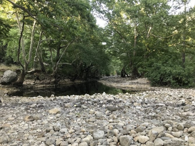 Antalya'nın Akseki ve İbradı sınırlarında bulunan Üzümdere ırmağı, birkaç gölet dışında kurudu.