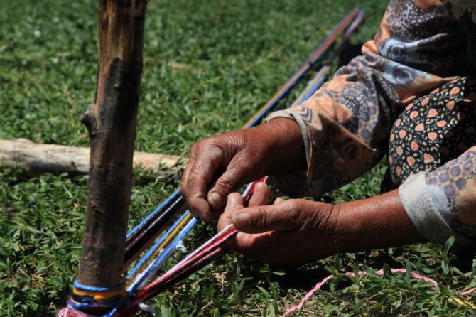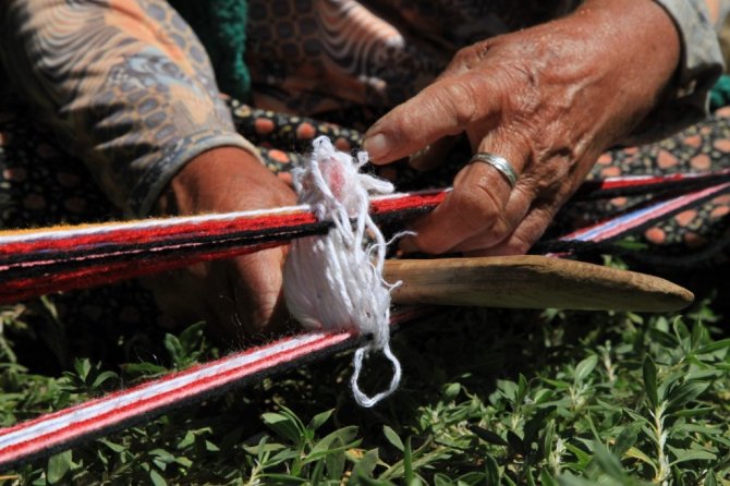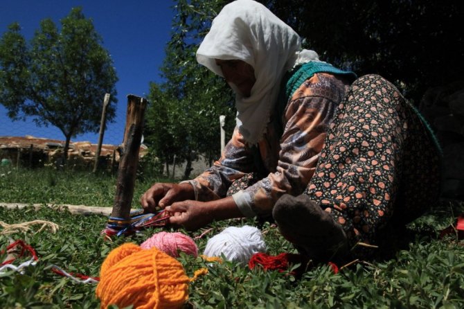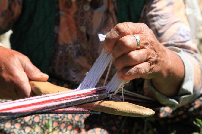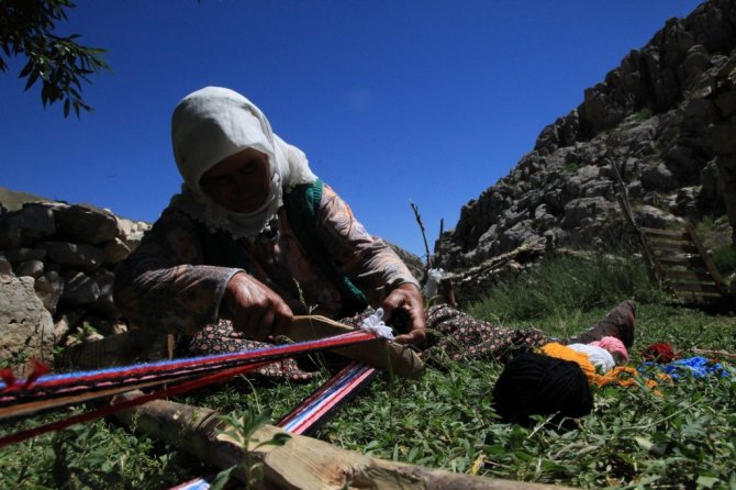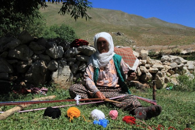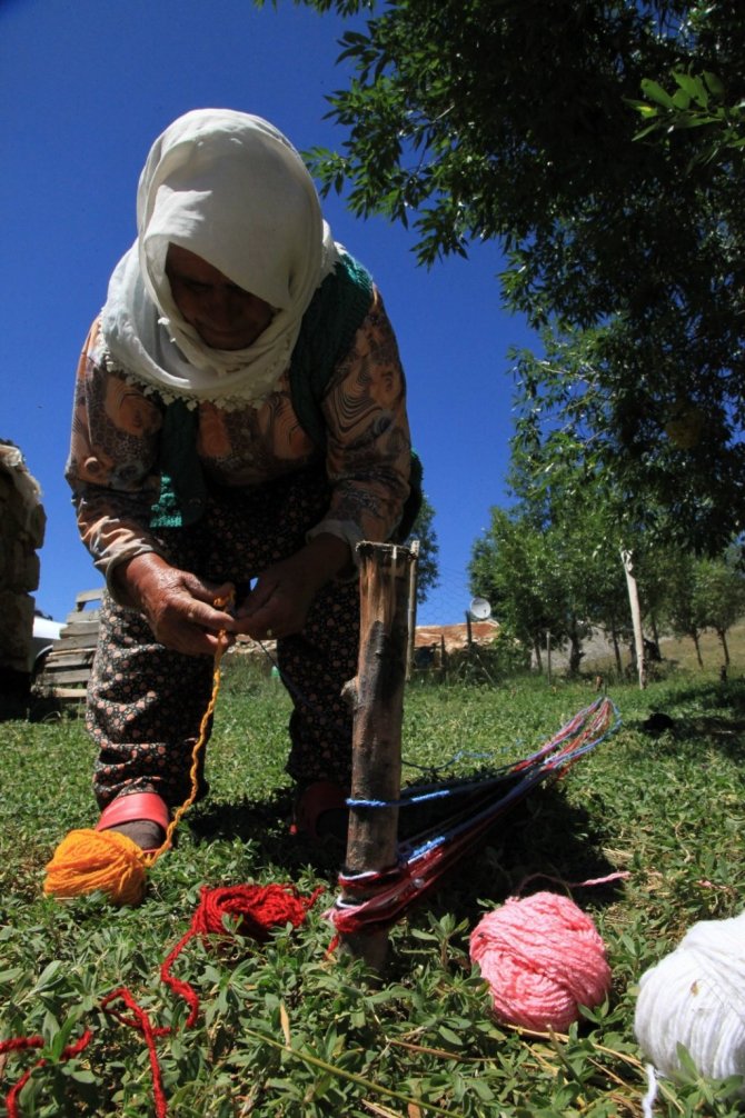 Göktepe Yaylası'ndaki obasında kurduğu tezgahta kolan adı verilen rengarenk kuşaklar ören 74 yaşındaki Mümine Kardaş, kadınların sırtlarında yük taşımak için kullandıkları kuşakları satarak para kazanıyor. Kolan dokumayı 7 yaşlarında annesinden öğrendiğini anlatan Kardaş, "İp örmeyi annemi izleyerek, o örerken bana verdiği görevleri eksiksiz yerine getirerek küçük yaşta öğrendim. Genç kızlığımda da, evlendikten sonra da ip örmeyi bırakmadım. Boş zamanımı ip örerek geçirdim" dedi.