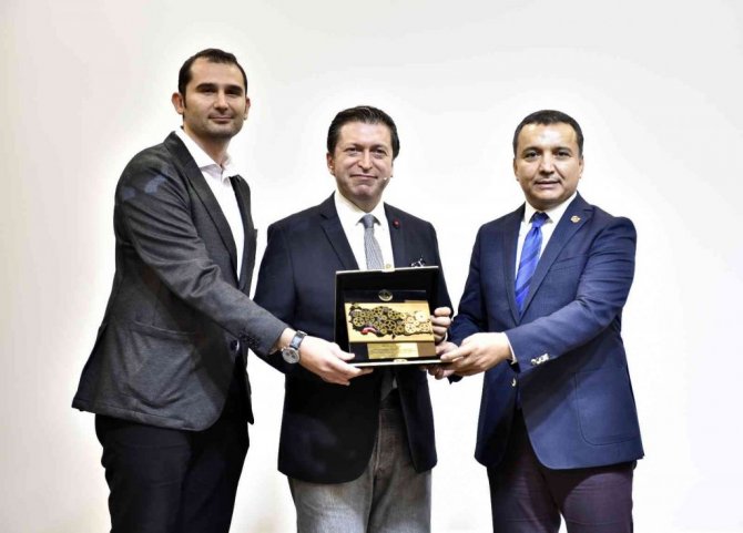 Söyleşi sonunda, AGC Başkanı İdris Taş, programdan erken ayrılmak zorunda kalan Antalya OSB Başkanı Ali Bahar adına Genç OSD Başkanı Ali Başar Ayan, Serdar Kuzuloğlu'na teşekkür plaket taktim etti.