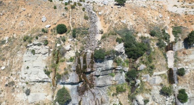 Şelaleden geriye kurumuş yosunlar kaldı