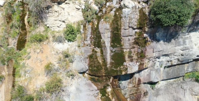 Antalya'nın Kaş ilçesindeki Batı Toroslar'ın en yüksek ikinci tepesi olan 3024 rakımlı Akdağ'ın eteklerinde bulunan Uçarsu Şelalesi kurudu. Daha önce gürül gürül akan şelaleden tek damla su akmaması görenlerde şaşkınlık oluşturdu. Şelalenin iki farklı anı havadan drone kamerası ile görüntülenirken, akan sudan geriye kurumuş yosunlar kaldı.