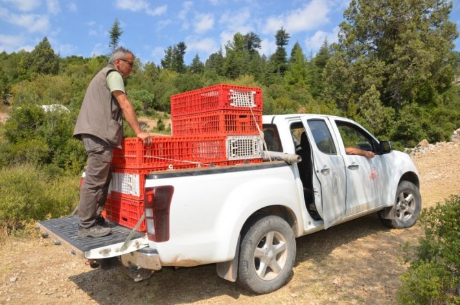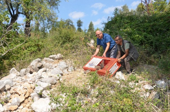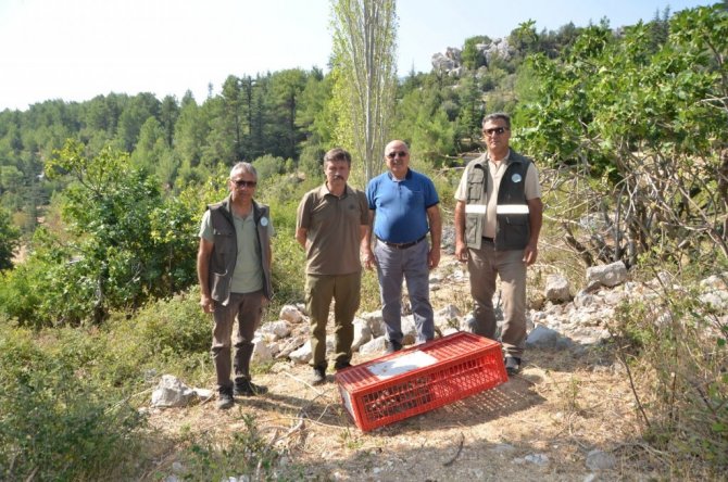 Antalya'nın ilçelerinde 18 bin kınalı keklik Doğa Koruma ve Milli Parklar Genel Müdürlüğü (DKMP) tarafından doğaya salınıyor.