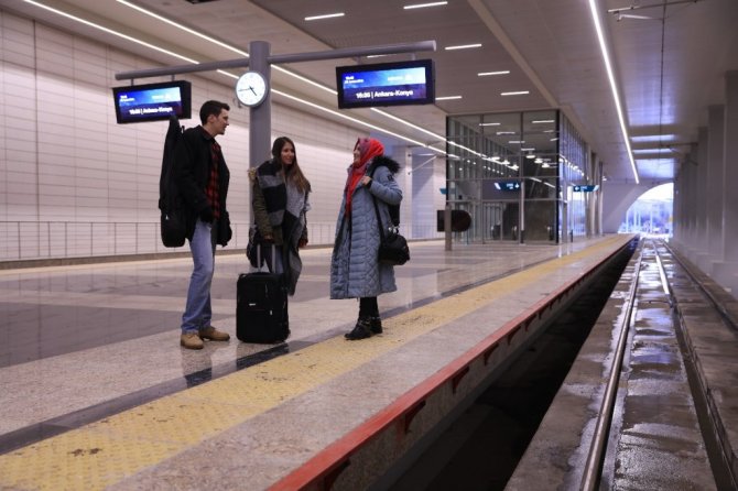 "Ankara-Eskişehir-Bursa 4 saat, Konya-Eskişehir-Bursa 4 saat 15 dakika, Ankara-Konya-Karaman 3 saat 35 dakika, İstanbul-Konya-Karaman 6 saat 55 dakika, Ankara-Konya-Antalya 7 saat 20 dakika, Ankara-Konya-Alanya 7 saat 30 dakika, İstanbul-Konya-Antalya 10 saat 30 dakika, İstanbul-Konya-Alanya 10 saat 45 dakika."