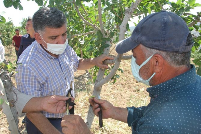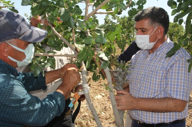Adıyaman'da Antepfıstığı bahçelerinin gelişmesi için hazırlanan proje kapsamında ağaçlara erkek fıstık aşısı yapıldı.