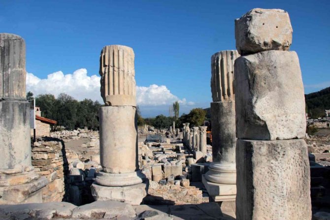 Antik kentin Kuzey Giriş kapısındaki çalışmalar büyük ölçüde tamamlanırken, kent içindeki çalışmalara ağırlık verildi. Bir taraftan eski yapıların restorasyonu sürerken, köy meydanından sonra giriş yapılan Batı Caddesi üzerindeki sütunlar ayağa kaldırılıyor. 10 metre genişliği ile antik dönemin en geniş caddesinin bulunduğu bölgede değişik dönemlere ait tüm yapılar yer alırken, kilise, mezarlar, 92 kişilik Latrina (Tuvalet) ve Roma hamamı gibi yapılar yer alıyor.