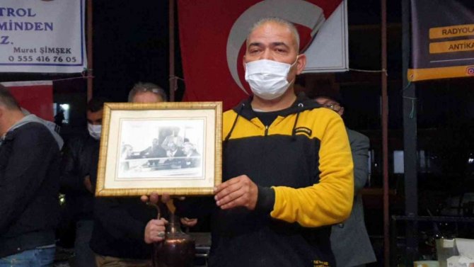 Nazilli El Sanatları ve Antika Sevenler Derneği Başkanı Murat Şimşek öncülüğünde düzenlenen mezatta konuşan Atatürk fotoğrafının sahiplerinden Edip Erturan, "Bu fotoğraf 9 Ekim 1937 tarihinde Nazilli Tren Garı'nda çekilmiş orijinal baskı bir fotoğraf. Fotoğrafın manevi değeri de zaten buradan geliyor ve döneminde orijinal olarak karta basılmış bir fotoğraftır. Fotoğrafta Mustafa Kemal Atatürk, Afet İnan, Celal Bayar, Mareşal Fevzi Çakmak, İsmet İnönü var. Türkiye Cumhuriyeti'ni kuran bu beşlinin bir arada bulunduğu nadir fotoğraflardan bir tanesidir. Bu fotoğrafı İstanbul'daki bir müzayededen satın aldık. Bizim için ve Nazilli için çok önemli bir fotoğraf. Geçmişimizin belleğimizde taze kalması ve zaten Nazilli'de çekilen bu fotoğrafın Nazilli'de olduğunun bilinmesi için müzayedeye getirdik. Amacımız satmak değil bu fotoğrafın Nazilli'de olduğunu anlatabilmek" dedi.