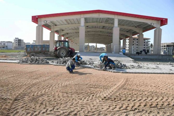 Gaziantep'in Araban ilçesinde Şahinbey Belediyesi'nin desteği ile yapımına başlanan Kapalı Pazar Yeri inşaatı tamamlanırken, devam eden çevre düzenlemesinin...