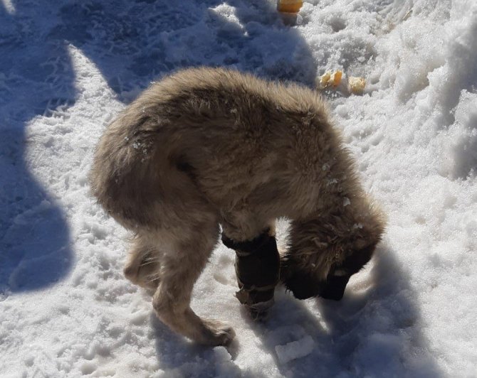 Bingöl'ün Solhan ilçesinde aracın çarpması sonucu ayağı kırılan yavru köpek için vatandaşlar seferber oldu.