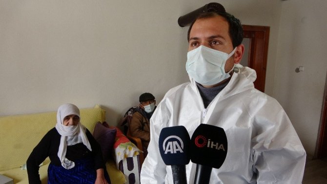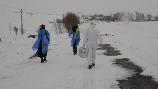 Muş Toplum Sağlık Merkezinde Doktor olarak görev yapan Mürsel Serçek de aşı çalışması için Serinova Beldesine bağlı Aydıngün mezrasına geldiklerini ifade etti. Kar nedeniyle araçlarının mezraya ulaşamadığını kaydeden Serçek, "Yolun belli bir kısmını yaya olarak geldik. Şuanda aşımızı yaptık. Aracımız mezraya 2 kilometre kala yolda kaldı. Bu yüzden bizde hastamıza ulaşma durumundaydık. Ondan dolayı kalan yolu yaya olarak geldik ve hastamıza ulaştık. Evde ısındık. Birazdan tekrar o yolu tekrar dönmek zorundayız" ifadelerini kullandı.