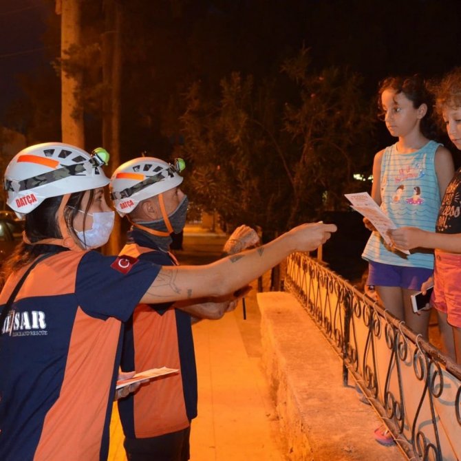 Muğla'nın Datça ilçesinde Mahalle Afet Gönüllüleri/Acil Müdahale Derneği (MAG-AME/SAR) ekibi 17 Ağustos depreminin 22'nci yıldönümünde vatandaşlara broşür dağıtıp, bilgilendirmelerde bulunarak başta deprem olmak üzere tüm afetlere karşı uyardı.