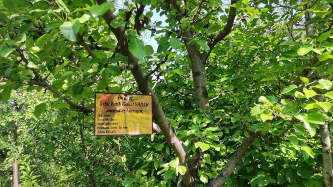 Artvin'de Türkçe öğretmeni İbrahim Bülbül, arazisinin 15 bin metrekarelik bölümünü şehitlerin anısına meyve bahçesine çevirdi.