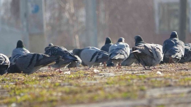 Öte yandan mahalleli, soğuk hava nedeniyle yiyecek bulmakta güçlük çeken güvercinler için kaldırımlara yem bırakıyor.