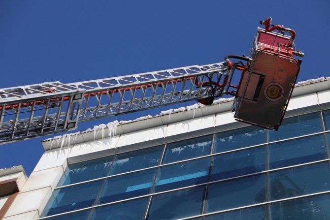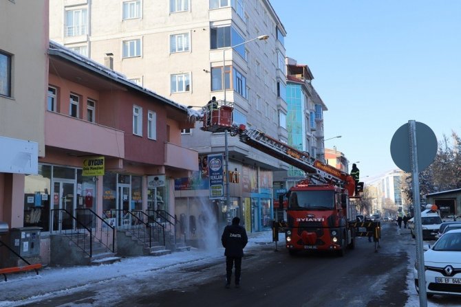 Ardahan’da tehlike arz eden çatılardaki buz kütleleri temizleniyor