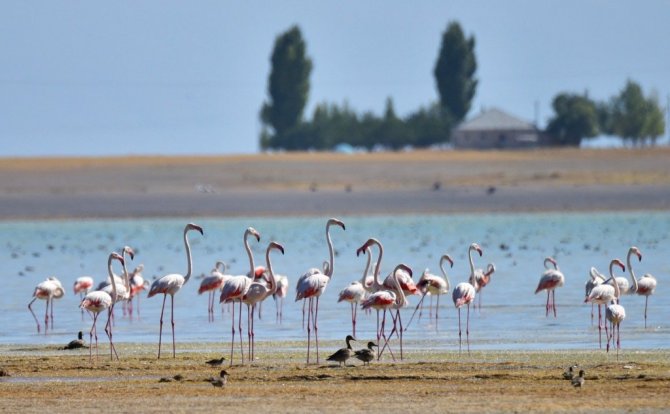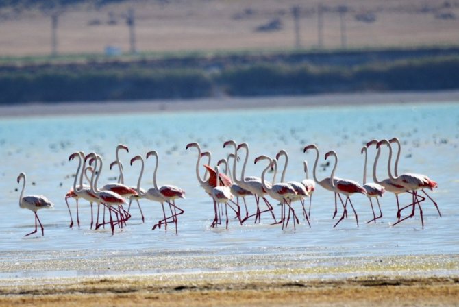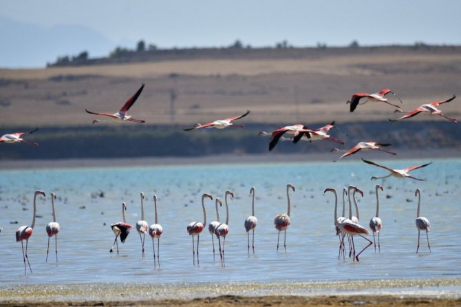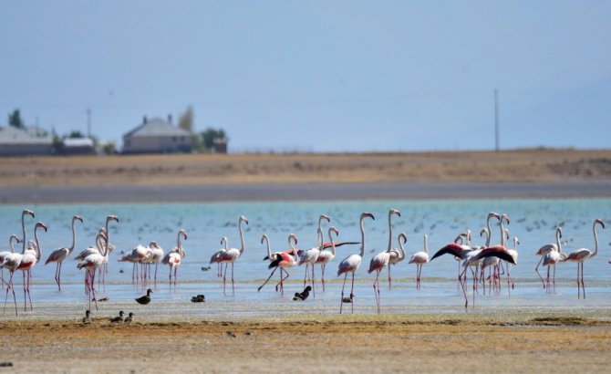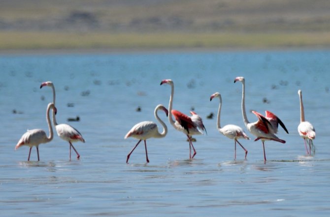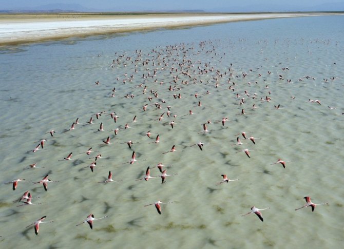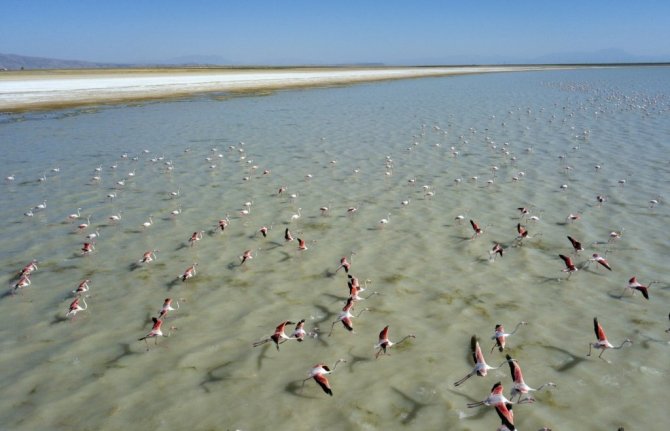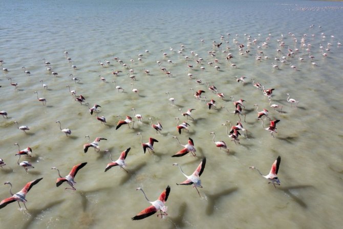 Arin Gölü’nü renklendiren Flamingolar havadan görüntülendi