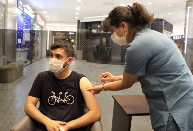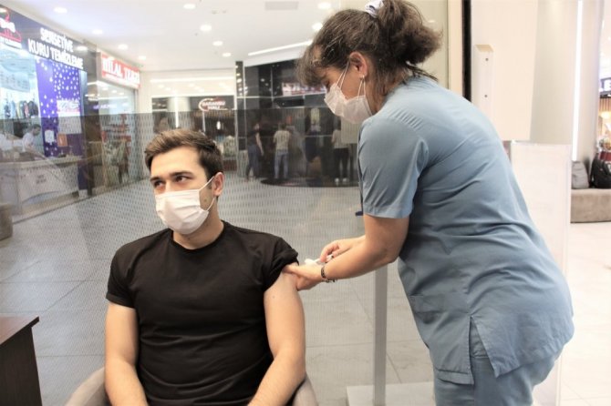 Arkadaşı ile alışverişe gitmişti, AVM’de annesinin elinden Covid-19 aşısını oldu