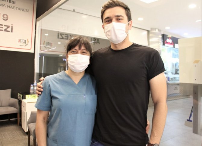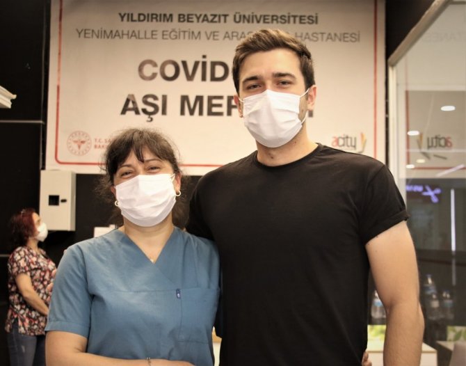 Normalde, Yenimahalle Eğitim ve Araştırma Hastanesi'nde ebe olarak görev yapan ve aşı biriminde görevlendirilen anne Gültaze Çimgöl ise "Umarım aşılama yoğun bir şekilde devam eder. Bir an önce bu işi hızlandırıp bitirmek istiyoruz biz de. Oğlumun gelmesi benim için de sürpriz oldu. Hoş bir tesadüf oldu. Daha önce de sağlık evinde çalıştım, o zaman da orada çalışan tek ebe olduğum için kendi çocuğumu da aşılamıştım" diye konuştu.