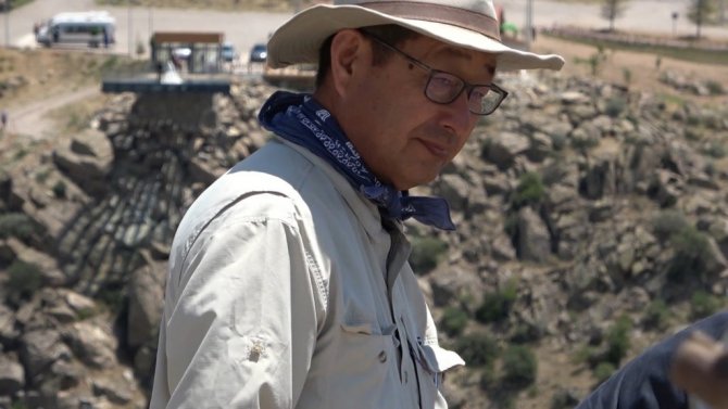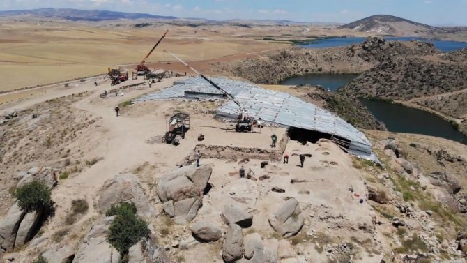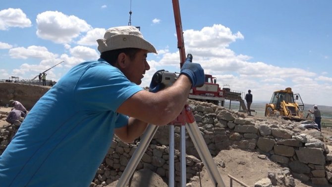 "Bu seneki amacımız; arkada görünen bu Geç Demir Çağı'na ait. Milattan Önce 7'nci yüzyıl, 2 bin 700 sene önceki sur duvarları üzerinde çalışıyoruz. Buradaki zemindeki tabaka, milattan önce Hititlere ait bir tabaka. Bu Demir Çağ üzerindeki çalışmaları bitirip, aşağıdaki Hitit tabakasına girmeye çalışıyoruz. Şimdi 3 takım grup halinde çalışmaları sürdürüyoruz. Epey geniş alanda mesela burada 40-60 metrekare içerisinde çalışmalar yapılıyor. Şimdiye kadar yapılan çalışmada en yeni Osmanlı dönemine ait yerleşim yeri, 4-5 bin yıl önceki döneme ait yerleşim yeri burada tespit edildi. Bizim amacımız yoğun olarak Milattan Önce 2 bin. Burada büyük şehir vardı. Burada biz tepenin üzerinde şu an çalışıyoruz. Bunun arkasında batıda bir "aşağı şehir" var. Orada ticaret merkezi o dönemde varmış. Burada bir ticaret merkezi şehir üzerinde çalışmaları yapmayı planlıyoruz."