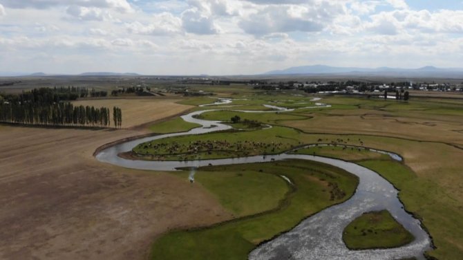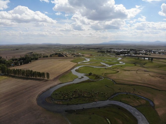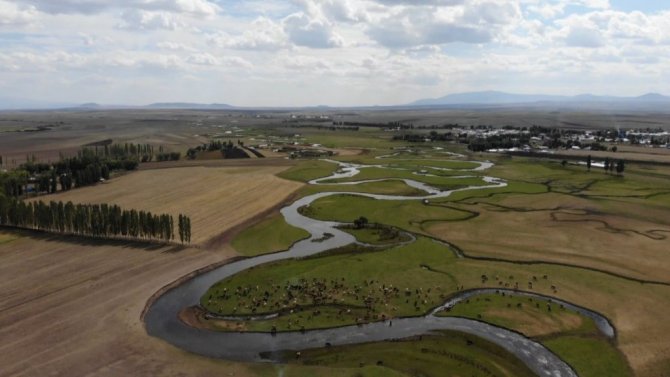 Her mevsim bir başka güzelliğe bürünen Arpaçay menderesleri, sonbahar da havadan görüntülendi. Hayvanların su ihtiyacını karşıladığı, çobanların etrafında ateş yakar çay koydukları menderesler kartpostal görüntüler ortaya çıkardı.
