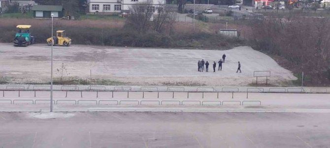 Düzce İl Sağlık Müdürlüğü tarafından helikopter ambulansların kolaylıkla inip hastaları alabilmeleri için yapılan helikopter pistinde çalışmalar...
