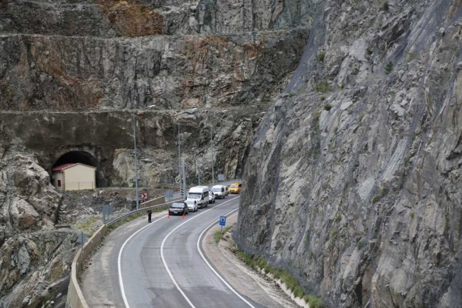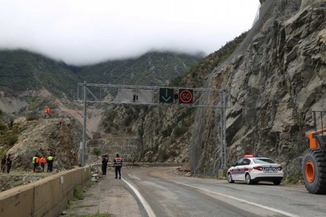 Artvin'de yamaçtan kopan toprak ve kaya parçaları nedeniyle Artvin-Erzurum karayolu ulaşıma kapandı.