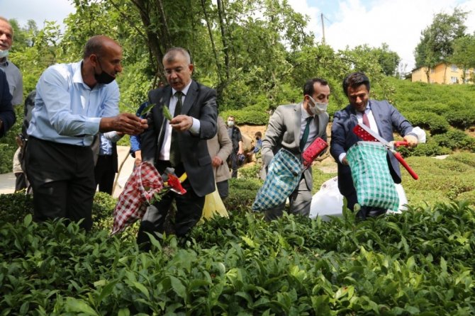 Vali Doruk, daha sonra beraberindekilerle bir çay bahçesine giderek çay hasadı yaptı. Doruk, son olarak Muratlı Köyüne giderek Murat Çay Farikasında incelemelerde bulunup yetkililerden bilgi aldı.