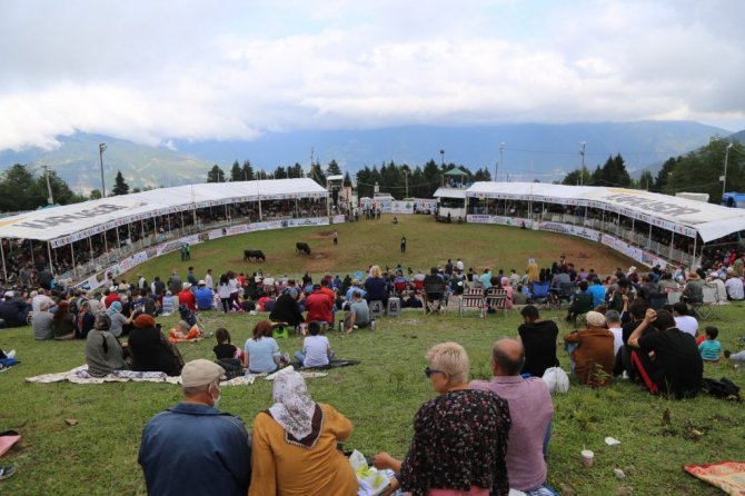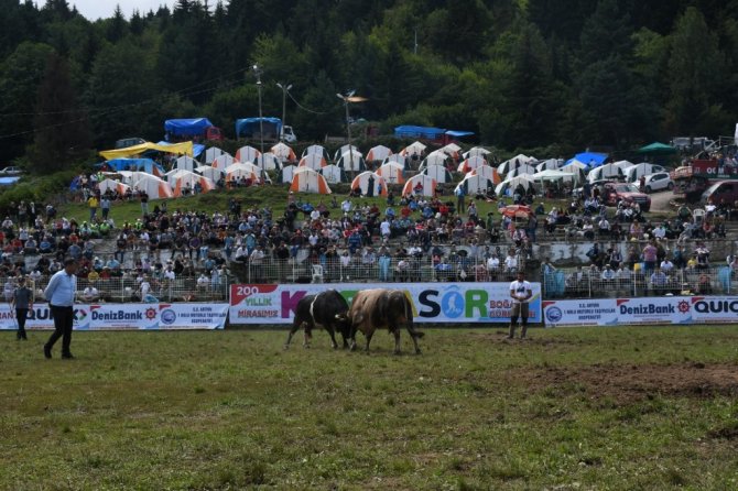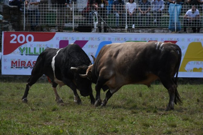 Artvin'de bu yıl 40.'sı düzenlenen boğa güreşleri, bin 200 rakımlı Kafkasör Yaylası'nda başladı.