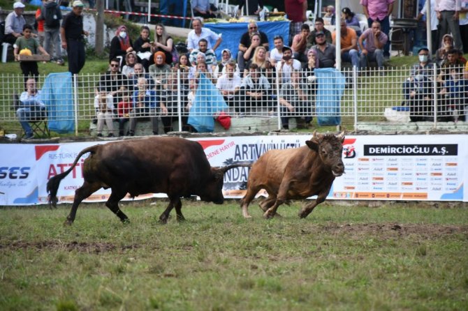 Artvin Belediyesi organizasyonunda, Artvin Kafkasör Geleneksel Boğa Güreşlerini Yaşatma ve Yaylarını Koruma Spor Kulübü Derneği tarafından düzenlenen ödüllü boğa güreşleri festivalinin ilk gününde Deste, Ayak, Küçükorta ve Süperbaş kategorilerinde 32 boğa kozlarını paylaştı.