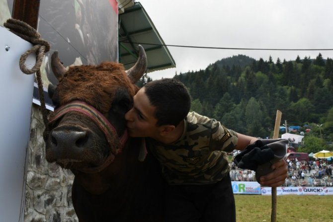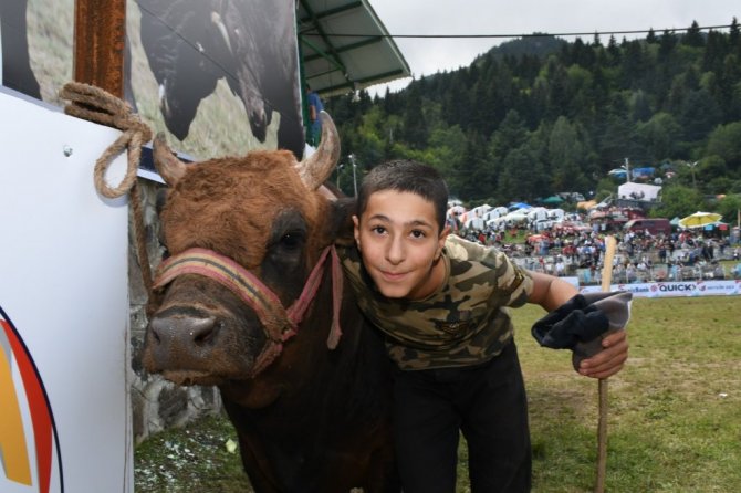Artvin'de bu yıl 40.'sı düzenlenen boğa güreşleri, bin 200 rakımlı Kafkasör Yaylası'nda başladı. 13 yaşındaki boğa güreşçisi arenada boğasıyla dans ederken, kadın boğa güreşçisi ise tribünden büyük destek aldı.