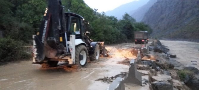 Öte yandan Yusufeli ilçesinde etkili olan yağış Evren mahallesinde bulunan derenin taşmasına sebep oldu. Taşan dere karayolunu ulaşıma kapatırken, bir kamyon ve sürücüsü taşan derenin ortasında mahsur kaldı. Aracını hareket ettiremeyen sürücünün yardımına Yusufeli Belediyesi ekipleri koştu. Kamyon bulunduğu yerden kurtarılarak güvenli bölgeye çekildi. Ekipler iki ayrı ilçede de çalışmalarını sürdürdüğünü öğrenildi.