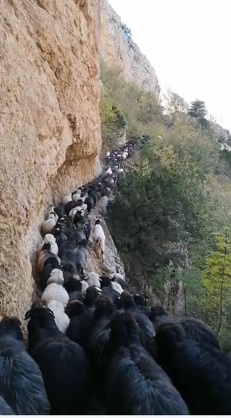 Artvin'in Ardanuç İlçesinde küçükbaş hayvan besiciliği yapan Erkan Biçer, sürüsünü otlağa götüre bilmek için zorlu geçitleri kullanıyor. Onlarca keçi ve koyun, tek sıra halinde hata yapmadın sürü psikolojisiyle ilerliyor. Uzun yıllardır küçükbaş hayvan yetiştiriciliği yapan Biçer, yaptığı mesleğin ve coğrafyanın zorluklarını adeta cep telefonu kamerasına kayıt etti. İlçeye bağlı Ferhatlı köyünde bulunan dar geçitte ikişerli üçerli sıralar halinde ilerleyen koyun ve keçiler, uçuruma aldırış etmeden, doğuştan gelen yeteneklerini kullanarak rahatça geçiyor.