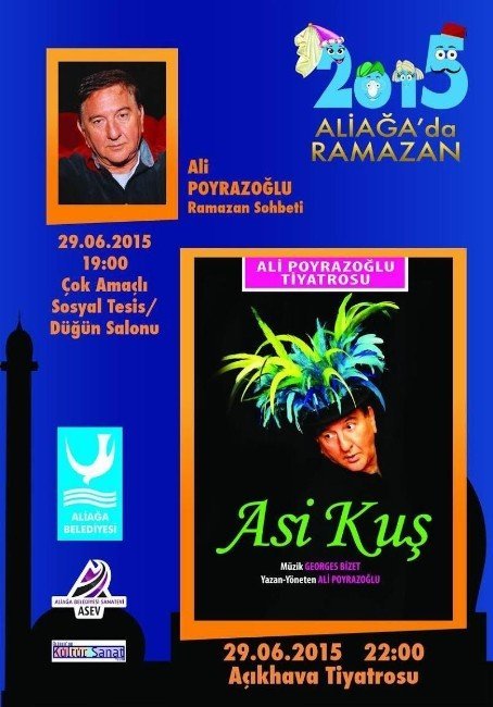 29 Haziran Pazartesi günü Aliağa Açıkhava Tiyatrosu’nda saat:22.00’de başlayacak olan oyunun biletlerinın Aliağa Belediyesi Sanat Evi gişelerinden ve Biletix’ten 5 TL karşılığı temin edilebileceği öğrenildi.