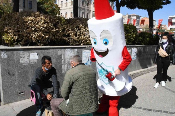 Aksaray Belediyesi, Covid-19 salgınına karşı aşılanmaya farkındalık oluşturmak ve turuncu kategorideki Aksaray'ın tekrar mavi kategoriye taşınmasını sağlamak için aşı maskotu ile meydandaki vatandaşlara çağrıda bulundu.