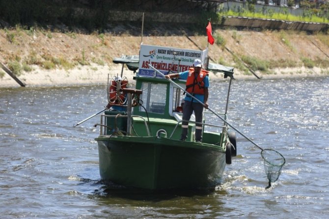 Hatay Büyükşehir Belediyesi, Asi Nehri'nde ki katı atık ve su sümbüllerini tekneler ile temizlemeye başladı.