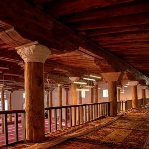 "Caminin içerisindeki ağaçlar çok özel. Özellikle ardıçlar dünyanın en dayanıklı ağaçlarından bir tanesidir. Bir kısmını ardıç bir kısmını da çam olarak yapmışlar. Çam çok dayanıklı ve güçlü değil ama içindeki reçinelerden dolayı uzun ömürlü. Dolayısıyla bu caminin bu kadar süre ayakta kalmasının birinci sebebi tam kesme vaktinde kesiyorlar. Ağacı kestikten sonra birkaç ay suya atıyorlar. Sonra ilaçlayıp kullanıyorlar. Kullandıkları ağacın cinsi ve altındaki boşluk çok önemli. Bütün bu ahşap direkli camilerin altında boşluk olur. Altta hava sirkülasyonu oluşturup halılara güve gelmesini engelliyor ama esas önemli olan altta sürekli rutubet ve nem olması. Bu rutubet ve nemden oluşan buharı ağaçlar emdiğinde krem vazifesi görüyor. Böylelikle ağaçların kuruyup çatlamasını ve yarılmasını önlüyor. O günün şartlarına bakılırsa çok muhteşem bir işçilik yapılmış. Caminin önemli özelliklerinden bir tanesi de çatısında deve kuşu yumurtaları bulunuyor. Örümcek gelmesini engelliyor. Camide 2016 yılında yapılan restorasyon çalışmalarının ardından UNESCO Geçici Miras Listesi'nde bulunan bir cami oldu."