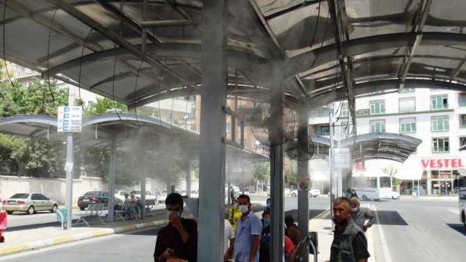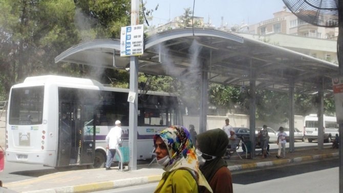 Hava sıcaklığının 42 derecenin üzerinde seyrettiği Şanlıurfa'da sıcaklık, günlük yaşamı olumsuz yönde etkiliyor. Şanlıurfa Büyükşehir Belediyesi Ulaşım Daire Başkanlığı, şehir içi yolcu taşımacılığında kullanılan otobüslerde klimaların açık tutulması için denetimlerini sürdürürken yolcuların durakta otobüs beklerken de sıcaktan etkilenmemeleri için "Buharlı serinletme" uygulamasını başlattı. Uygulama kapsamında otobüs duraklarında kurulan sistemle vatandaşlara soğuk su püskürtülüyor. Büyük vantilatörün de yerleştirildiği duraklarda otobüs bekleyenlerin, püskürtülen soğuk suyla sıcaktan korunması amaçlanıyor. Duraklarda buharlı serinletme yöntemi ile serinleyen vatandaşlar, tam çözüm olmasa da bir nebze serinlediklerini belirterek, teşekkür etti.