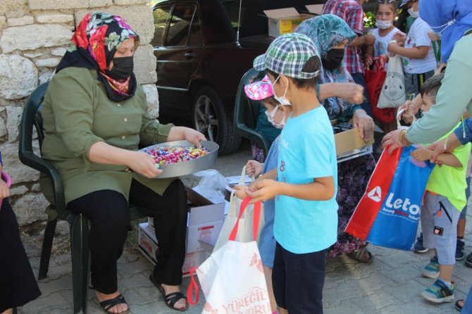 Çörek Derme'ye katılan çocuklardan Hasan Türkaslan, "Çörek toplamaya geldik, buradan başlıyoruz. Yukarıya doğru çıkıyoruz. Çıkarken bulduğumuz yerlerden Allah kabul etsin diyerek şekerleri toplayarak geliyoruz. Daha önce çok geldim. Güzel oluyor eğleniyoruz" dedi.