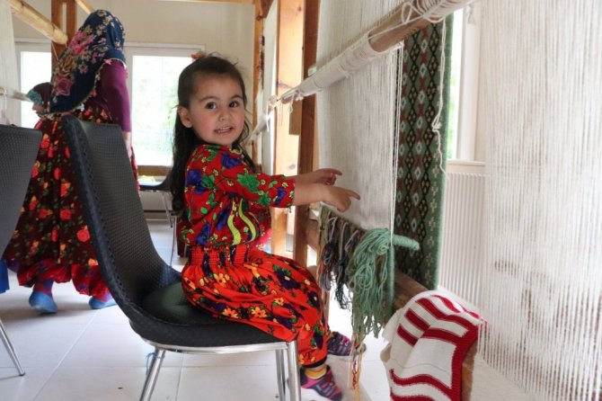 Usta öğretici Sabire Gözel (32) ise çocuğunu çekirdekten yetiştiriyor. Kültürlerine sahip çıktıklarını dikkat çeken Gözel, "Çocuklarımıza geleneklerimizi öğreterek, giydirerek öyle yetiştiriyoruz. Burada torba, kilim gibi yöresel ürünler dokuyoruz. Yöresel giyiniyor, yöresel dokuyoruz. Bu işimizin devam etmesini istiyoruz" açıklamasında bulundu.