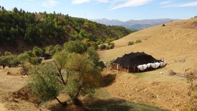 Güneydoğu'dan Muş'un serin yaylalarına gelerek hayvanlarını otlatan göçerler, atalarından kalma asırlık kıl çadır geleneğini yaşatmaya çalışıyor.