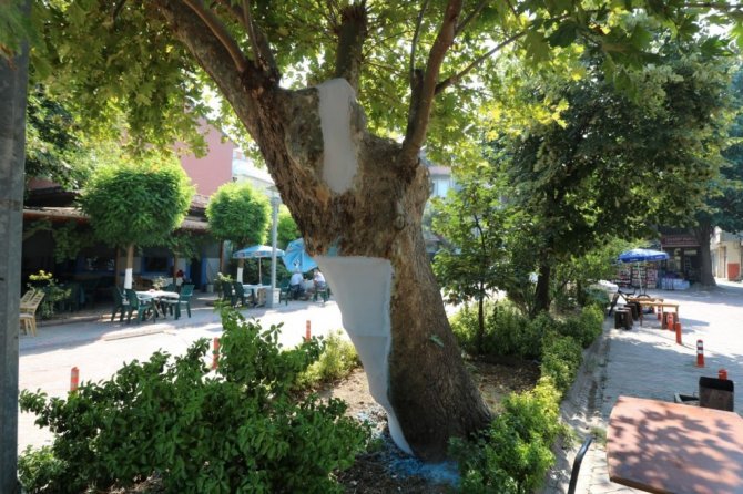 Asırlık çınar ağaçlarının bakımı ve tedavisi yapıldı