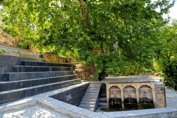 Kahramanmaraş Büyükşehir Belediyesi Onikişubat Avcılar Mahallesi'ndeki 812 yaşındaki çınarın bulunduğu alanda çevre düzenleme çalışmalarını tamamladı.