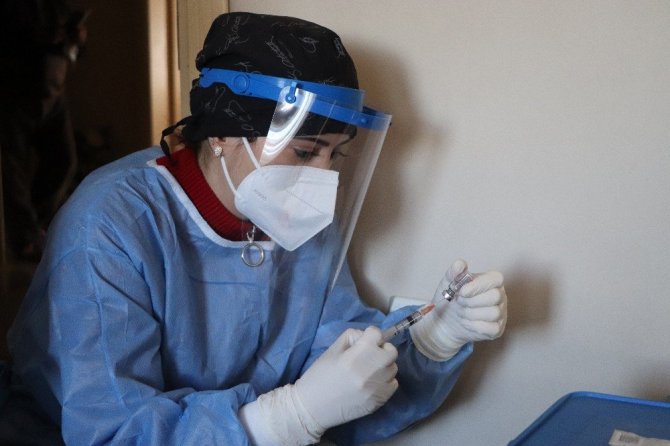 Zarife Kılıç'ın aşılama işlemi yapılırken 112 acil sağlık ekipleri ise olası bir olumsuzluğa karşı ambulans ile hazır bulundu. Samsun'da aşılama işlemi tüm hızıyla devam ediyor.