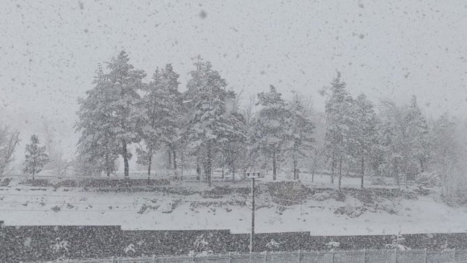 Erzurum'un Aşkale ilçesi sabah başlayan yoğun kar yağışı ile beyaza büründü.