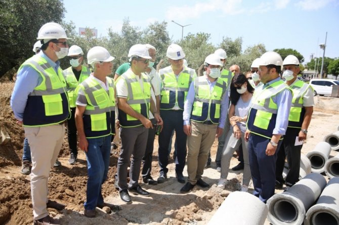 Başkanvekili Karakoz, Kuşadası'nın birçok noktasında çalışmaların tüm hızıyla sürdüğünün altını çizdi. Karakoz, Büyükşehir Belediyesi'nin altyapı yatırımlarını genişleterek devam ettiğini belirtirken "Hizmet planlarımız dahilinde içme suyu, yağmur suyu, tarımsal ve kanalizasyon altyapı hat yatırımlarımız devam edecek" şeklinde konuştu.