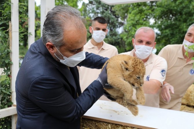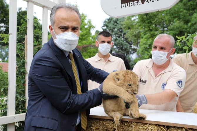 Bursa Büyükşehir Belediye Başkanı Alinur Aktaş da yeni doğan yavruları Hayvanat Bahçesi'nde ziyaret etti. Yetkililerden hayvanat bahçesindeki çalışmalar hakkında bilgi alan Başkan Aktaş, yavru aslanlardan birini eline alarak sevdi. Başkan Aktaş'ın tuttuğu sırada birden kükreyen minik aslan herkesi korkuttu. Minik aslanı havaya kaldıran Başkan Aktaş elimde aslan tutuyorum arkadaşlar ya kaçarsa diyerek espri yaptı. Heyecanlı anların da yaşandığı ziyarette, yavru aslanlar şimdiden Hayvanat Bahçesi'nin maskotu oldu.