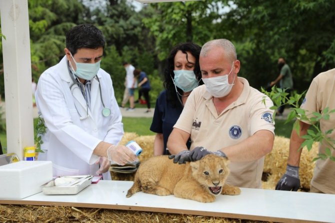 Yaklaşık 206 bin metrekare alanda 136 türden 1100 hayvanın bulunduğu Bursa Büyükşehir Belediyesi Hayvanat Bahçesi'nin nüfusu, yeni doğumlarla artmaya devam ediyor. Yılda ortalama 1 milyon ziyaretçiyi ağırlayan ve normalleşme süreciyle birlikte kapılarını yeniden açan Hayvanat Bahçesi'nde Afrika penguenleri, bozkurtlar, ala geyikler, Afrika deve kuşlarının ardından Afrika aslanlarında da doğum sevinci yaşandı. Bursa'da doğan "Kaptan" isimli erkek aslan ile 3 yıl önce başka hayvanat bahçesinden getirilen "İnci" adlı dişi aslanın 57 gün önce biri dişi, ikisi erkek olmak üzere toplam üç tane sağlıklı yavrusu dünyaya geldi. Yavru aslanlara Güneş, Çınar ve Vezir isimleri verilirken, nesli tükenmekte olan hayvanların yer aldığı "Kırmızı listede hassas kategorideki Afrika aslanlarının sayısı 5'e yükselmiş oldu. Yavruların cinsiyet tayini, ilk muayenesi ve ağırlık ölçümleri, ziyaretçilerin ve çocukların meraklı bakışları arasında veteriner ekip tarafından yapıldı.