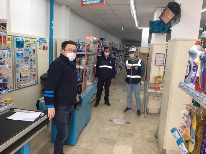 Kütahya'nın Aslanapa ilçesinde kolluk kuvvetleri tarafından, hafta sonu sokağa çıkma yasağı ile ilgili tedbirler kapsamında açık olan iş yerleri denetlendi.