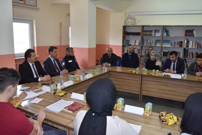 Daha sonra Kaymakam Gülyer ve beraberindeki heyet, kitap okumanın önemi ve kitap okuma alışkanlığı ile ilgili öğrencilerle sohbet etti.